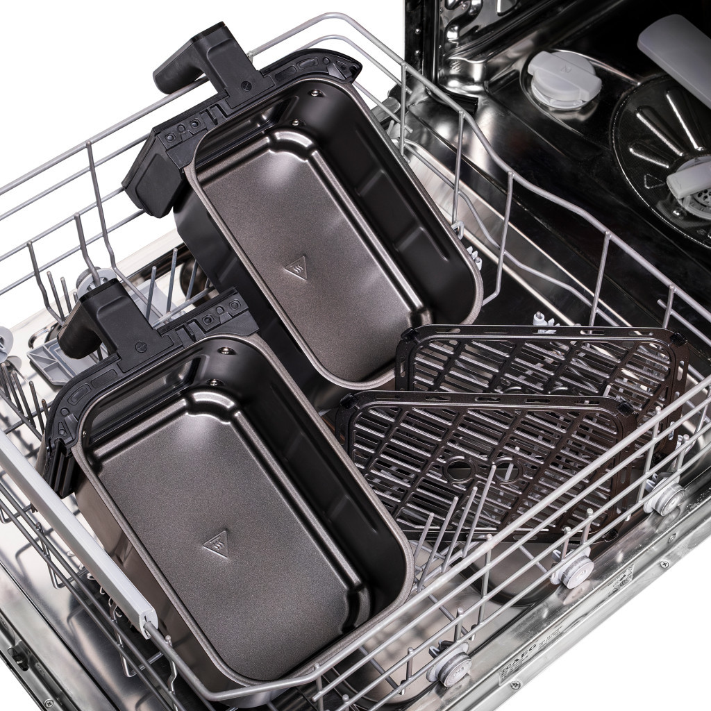 A Sync Cook segítségével könnyedén beállíthatod ugyanazt a hőmérsékletet és sütési időt mindkét kosárhoz egyszerre – ideális, ha ugyanabból az ételből két adagot készítesz. És mi a helyzet akkor, ha különböző ételeket készítesz? A Sync Finish funkció biztosítja, hogy még különböző programok esetén is pontosan ugyanabban az időben legyenek készen. Nincs várakozás, nincsenek hideg köretek – mindent egyszerre és tökéletes tempóban tálalhatsz.