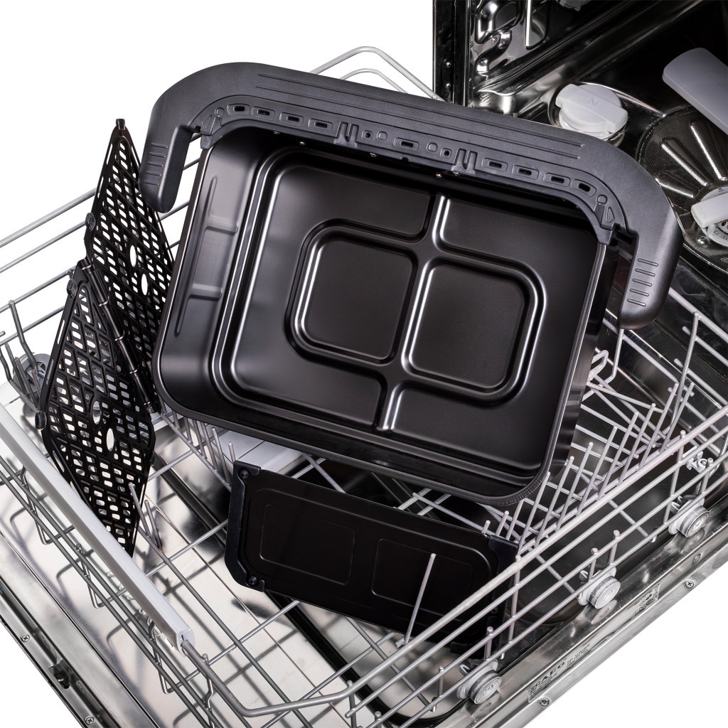 A biztonság és a könnyű használat adott. A készülék túlmelegedés ellen védett, és automatikusan kikapcsol, ha a kosár nincs megfelelően behelyezve. A csúszásgátló lábak stabilitást biztosítanak működés közben. A tapadásmentes felületnek köszönhetően a tisztítás gyerekjáték - minden kivehető alkatrész gond nélkül mosható mosogatógépben.